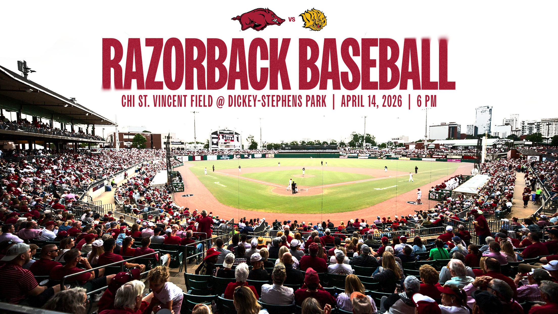 Coach Dave Van Horn and the Arkansas Razorback baseball team will be back at CHI St. Vincent Field at Dickey-Stephens Park in 2026. The Diamond Hogs will host UAPB on Tuesday, April 14, at 6:00 p.m.