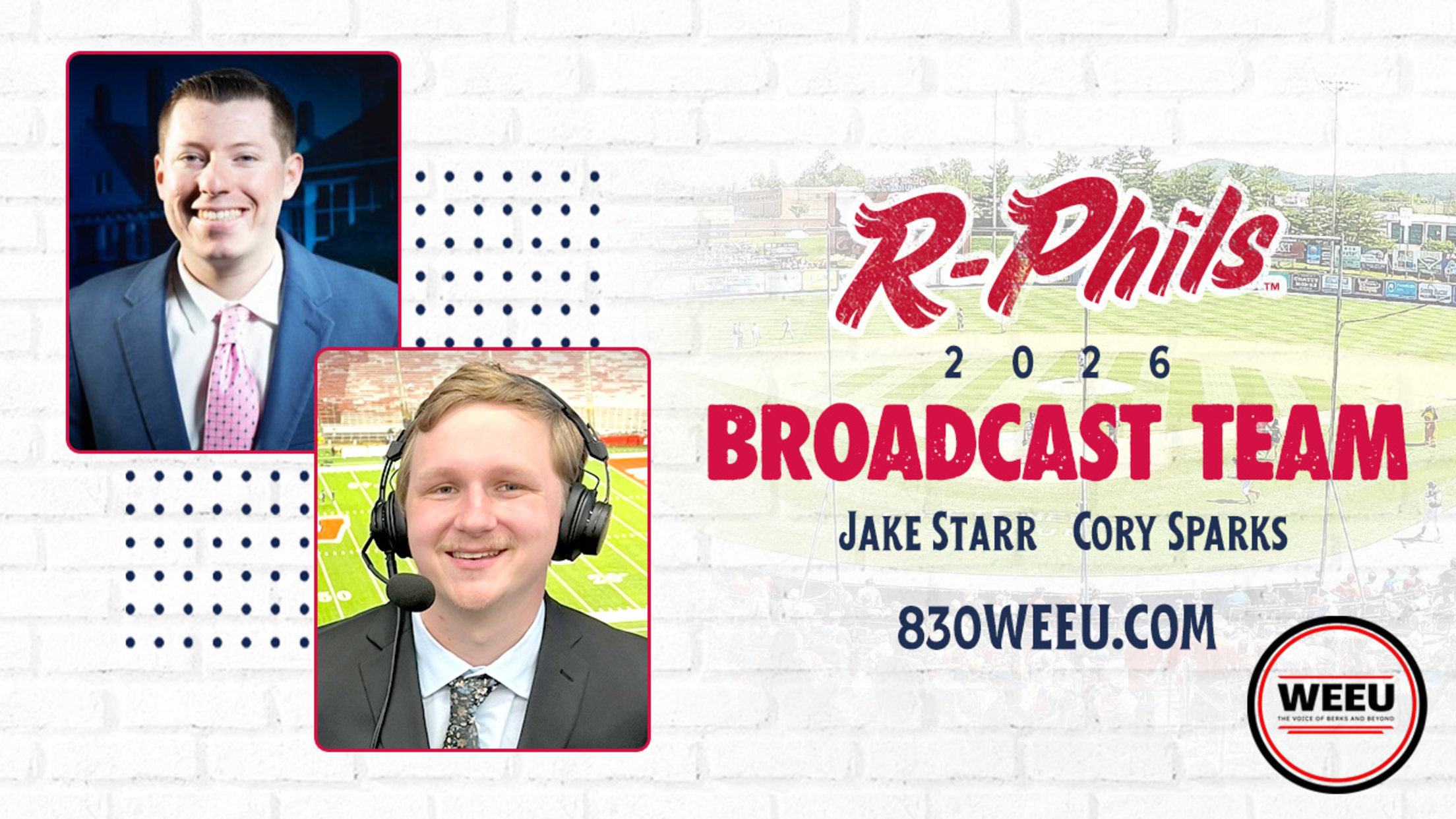 (Reading, PA) - The Reading Fightin Phils, Double-A affiliate of the Philadelphia Phillies, are excited to announce that Jake Starr and Cory Sparks will form the 2026 broadcast team, with all 69 home games again broadcasting on 830WEEU.com.